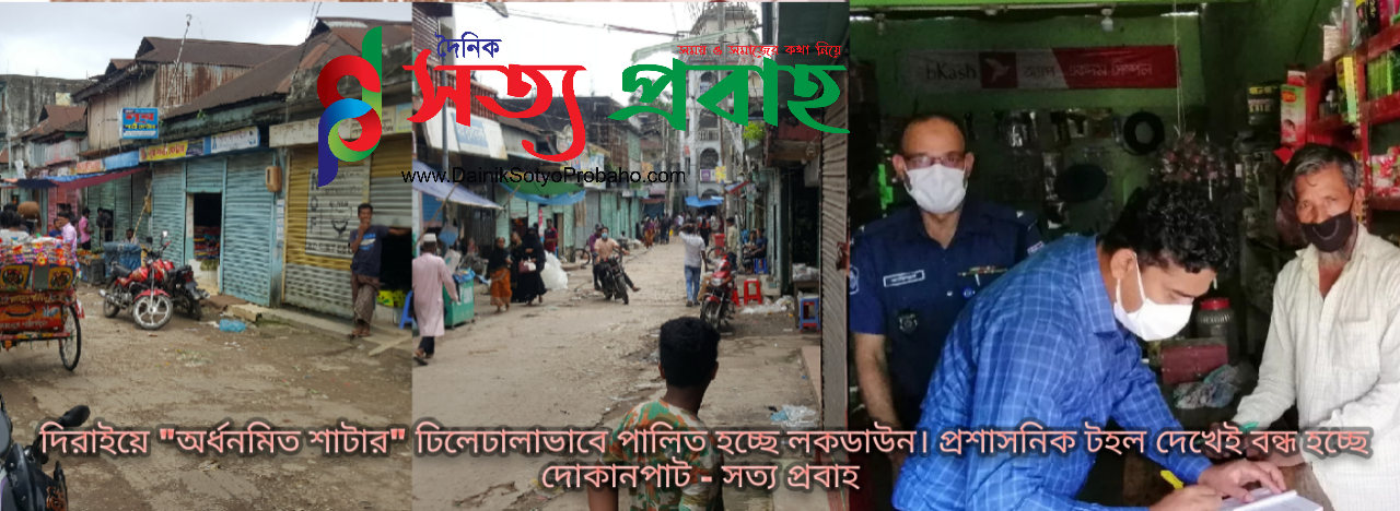 রুকনুজ্জামান জহুরী ::: সুনামগঞ্জের দিরাই উপজেলার বিভিন্ন বাজার ও পৌরশহরে ঢিলেঢালাভাবে পালিত হচ্ছে ৪র্থ দিনের লকডাউন। প্রশাসনিক তদারকির ভয়ে শুধু পুলিশ, সেনাবাহিনীর টহলের সময়ই দোকানপাট বন্ধ করছে ব্যবসায়ীরা। টহল শেষে